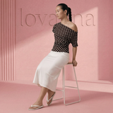 Das Lovaana Schultertop besticht durch seine klaren, strukturierten Linien und das asymmetrische Schulterdesign, wodurch eine Silhouette entsteht, die modern und zugleich zeitlos wirkt. Durch die präzise Betonung der Schulterpartie werden Dekolleté und Haltung hervorgehoben, ohne den Look zu dominieren.